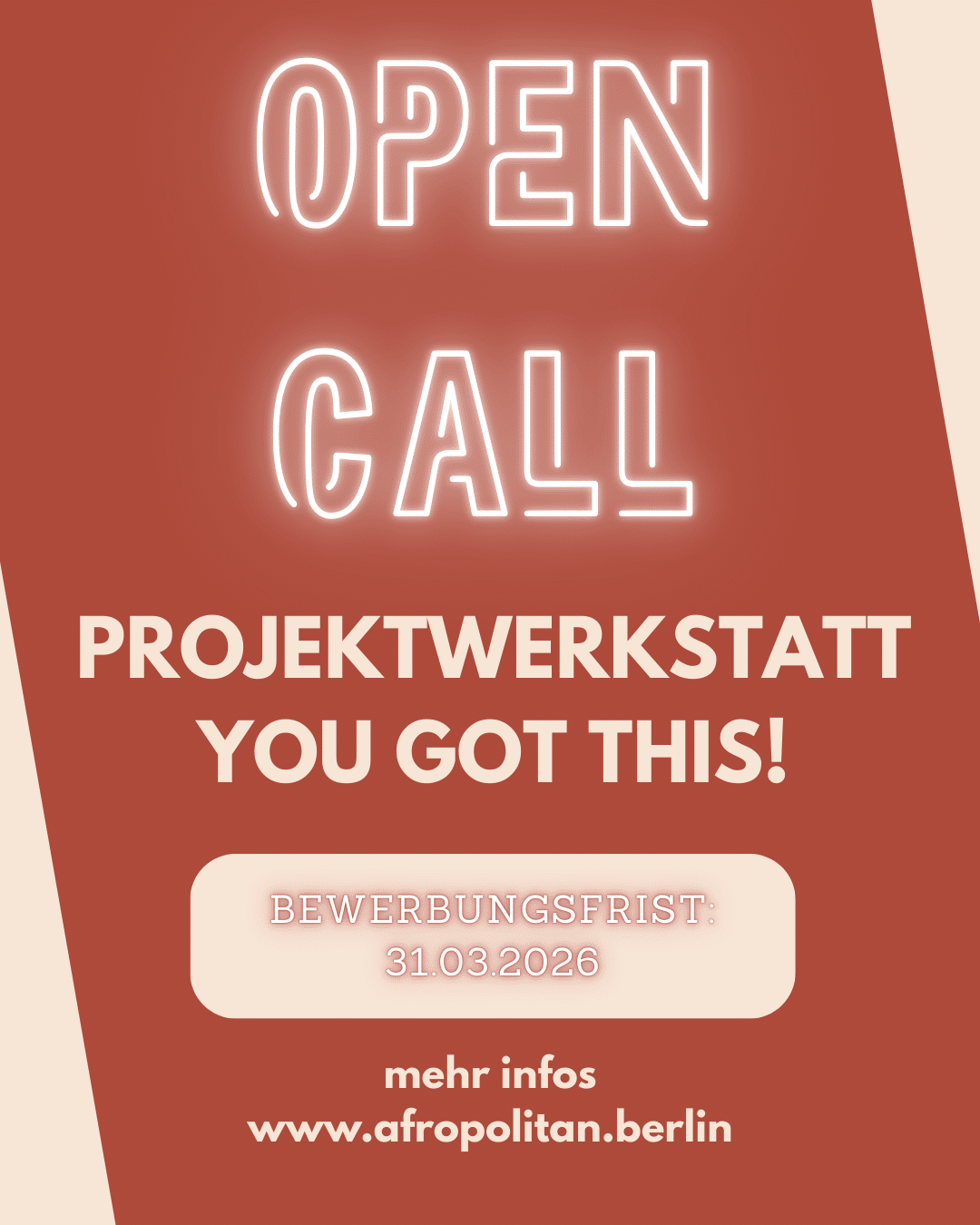 Wir bitten um Verständnis dafür, dass wir aufgrund begrenzter Ressourcen leider nicht immer alle eingereichten Projektideen unterstützen können. Bitte beachte auch, dass AfroPolitan Berlin nicht über die Ressourcen verfügt, um mögliche finanzielle Kosten für dein Projekt zu übernehmen.